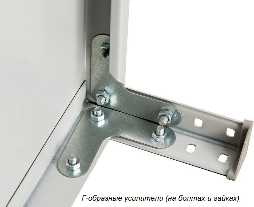 - Рекомендуется использовать дополнительные усилители ребра полки (повышают нагрузку на полку до 160 кг). Устанавливать, начиная с нижней полки.