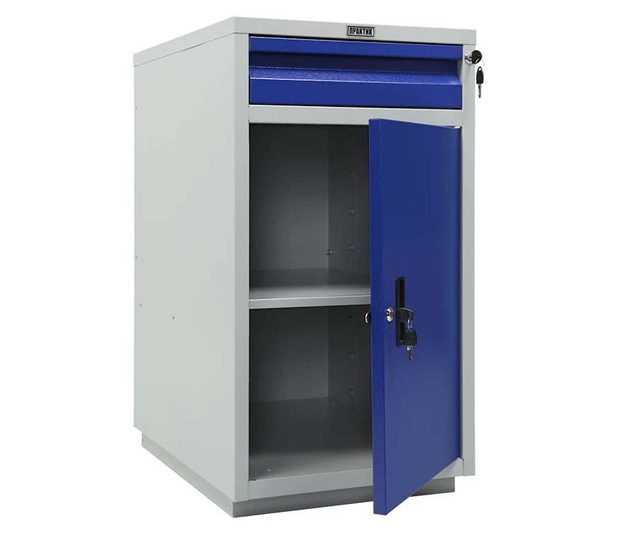 - Тумба WD-2: одна дверца, возможность смены стороны открывания двери, ключевой замок Практик, съёмная полка, регулируемая по высоте, нагрузка на полку 30 кг. Выдвижной ящик на телескопических направляющих, нагрузка на ящик 30 кг.
